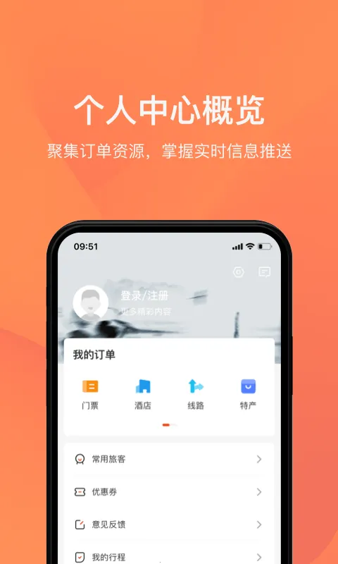 3. 个人中心概览,聚集订单资源,掌握实时信息推送。