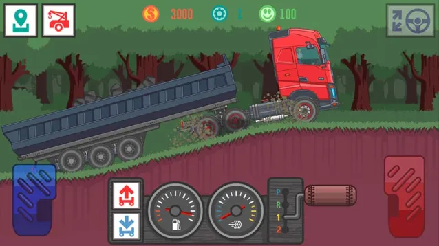 2、画面体验:采用2D横版过关玩法,像素画风搭配拟真物理引擎,清晰的画面带来逼真视觉体验,完美还原卡车重量感与复杂路况。