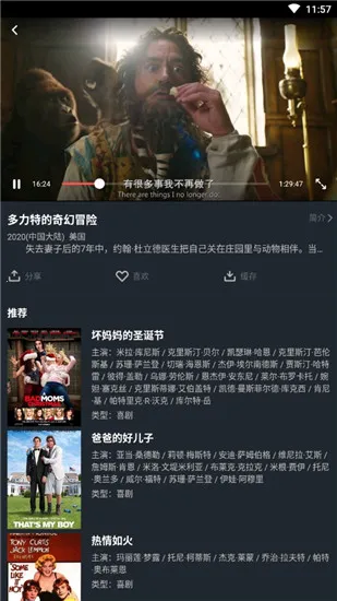 3、功能实用贴心:支持播放记录、高速下载和离线缓存,能随时随地畅享影视。有强大搜索功能和智能推荐系统,还支持投屏、播放本地视频,兼容多种主流视频格式。