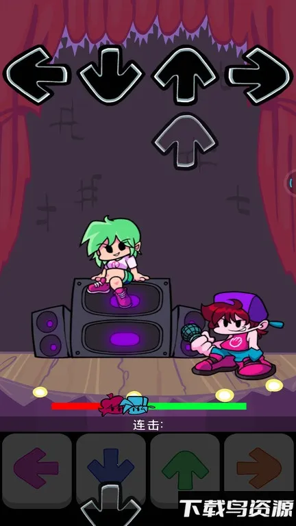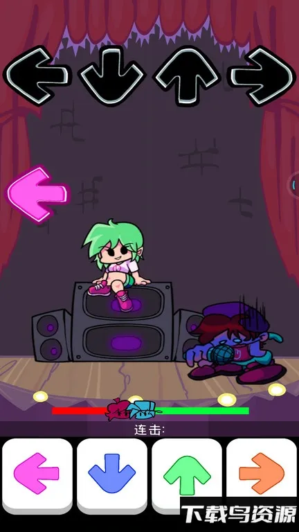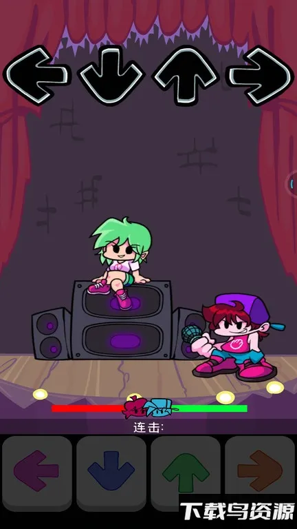 2、设有多位角色可供选择,在音乐对战中跟随节拍按箭头,获取高分战胜对手。