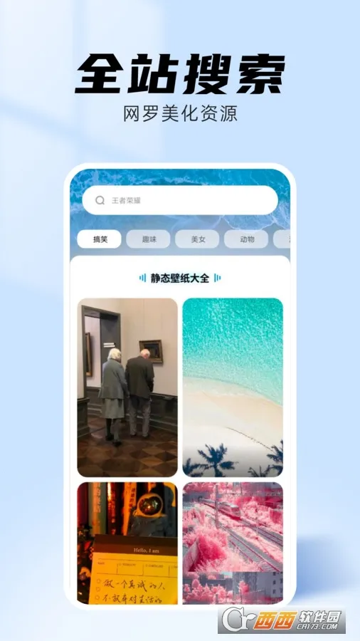 1、丰富的高清壁纸资源,涵盖风景、动漫、明星、抽象等多种主题,满足不同用户审美需求。