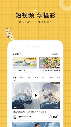 3、其优势明显,功能优质且使用自由,无过多规则;能在线打造拍摄计划,记录拍摄过程。用户还可通过短视频学摄影,每天5分钟,助力成为摄影达人。