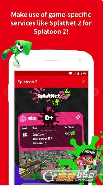 2、丰富实用的功能:可优化主机游戏上网体验,能通过SNS媒体邀请朋友进房间,在游戏中进行语音交流;还能查询Splatoon2玩家游戏合作服务、舞台排名、竞速破关等信息,邀请朋友在线游玩;也能查看经典游戏库,享用定期发布的独家游戏。