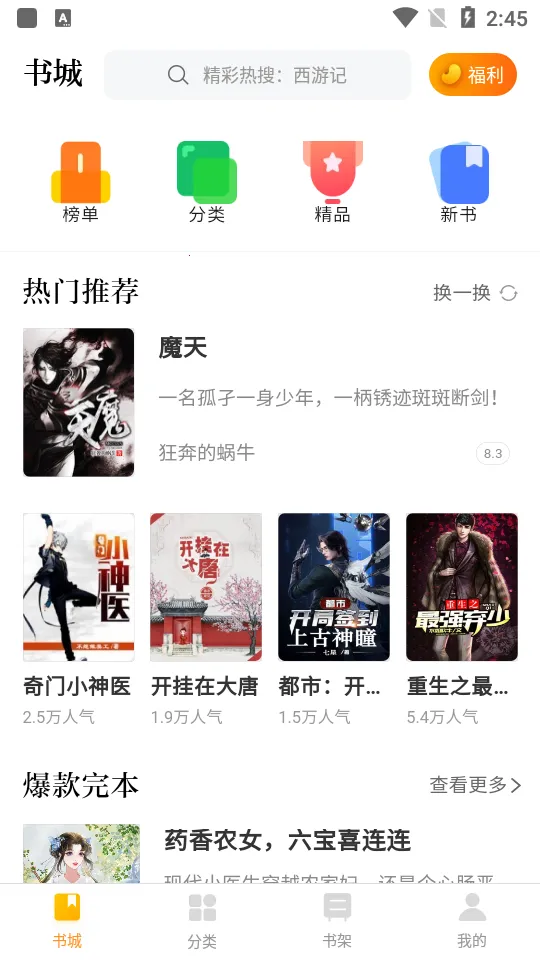 3、阅读便捷:支持离线下载、本地导入,没网也能读;书签同步,多设备阅读方便;智能推荐符合浏览记录的小说,搜索速度快。