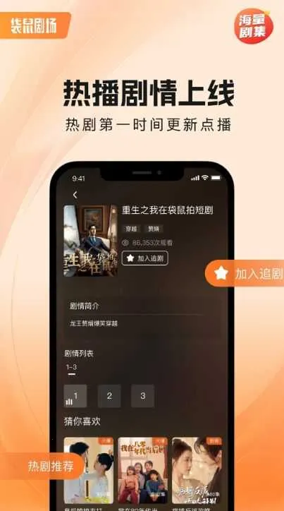 袋鼠剧场是一款超棒的短剧app。它题材丰富,涵盖都市情感、古装穿越等多种类型,每日更新,让你随时畅享精彩剧情。竖屏播放设计,轻滑操控超方便,还有贴心的断点续播功能,追剧轻松。这里有实时弹幕互动,能一键收藏剧集,设置追剧提醒,支持离线缓存,无网络也能随心看。