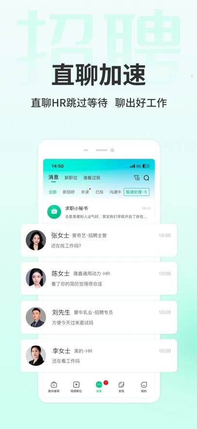 4. 支持一键投简历、在线沟通、视频面试和查看申请记录,求职流程轻松搞定。