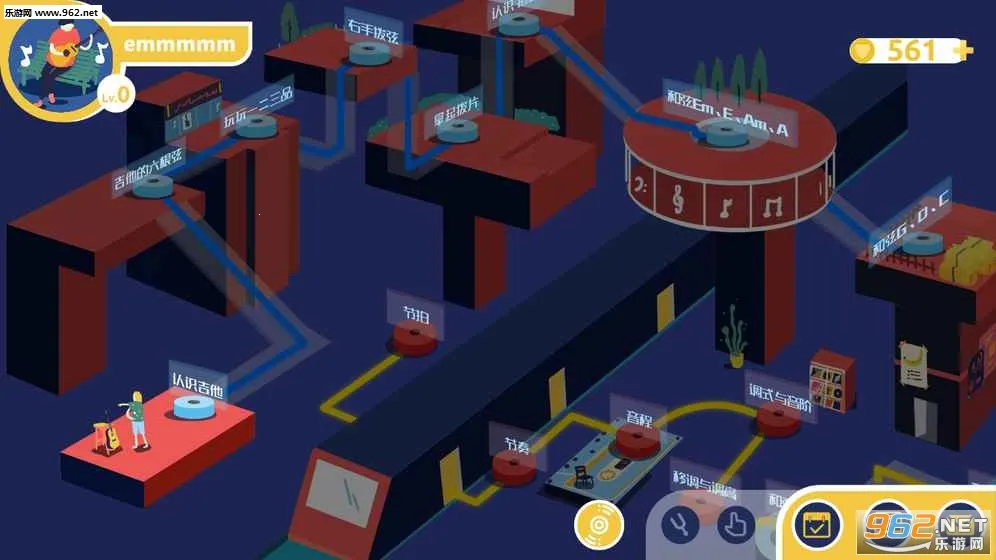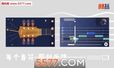 它有吉他、尤克里里、音乐素养等多种选择。比如在吉他弹奏这条游戏主线里,有百老汇音乐剧演员Ricky小哥哥深入浅出讲解右手手指对应的弦以及和弦。之后右滑菜单点选配套练习能巩固知识点,练习曲库还在不断增加。要是弹奏快了、慢了或弹错都会扣分,错太多游戏会自动停止需重新开始。
