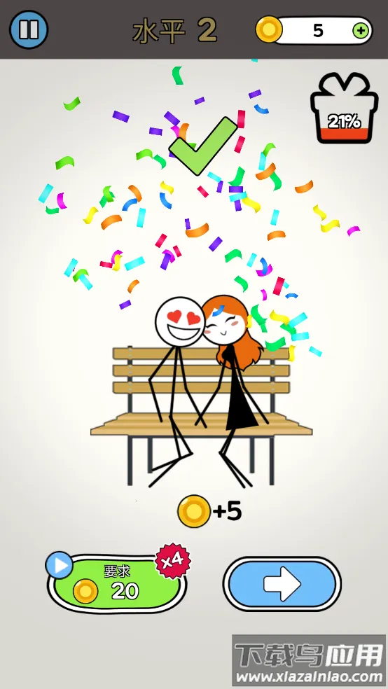 想知道怎么在“绘画故事爱女孩”里轻松通关吗?这款游戏超有趣!它以火柴人为主角,玩家要根据现实场景缺失部分,用画笔补全图形推动剧情。操作简单,大致画出对应形状就能过关,关键是猜出要补充啥。比如在花束上方画圆形、补长椅腿、给女孩画手提包等。游戏里男孩需要你帮忙拯救爱情,每个故事都藏着待发现物品。你得仔细观察画面,精准画出缺失物体才能通关。它能锻炼专注力和思考能力,通过闯关积累金币还能给女朋友买礼物。精心设计超 100 个关卡,能画出浪漫物品。魔性简单的绘画操作易上手,理解女孩恋爱心理就能玩得开心。在各种故事中体验兴奋过程,轻松休闲还能释放压力,利用空闲时间娱乐,让生活更充实。快来试试吧!