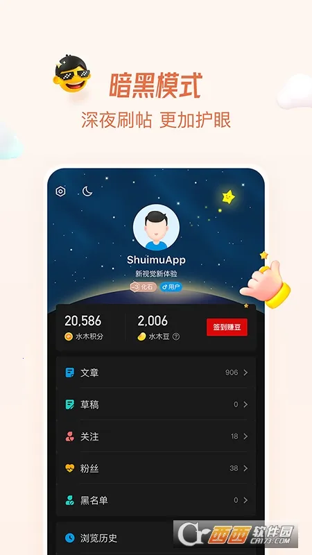 3. 贴心设计夜间浏览模式,保护用户视力,提升夜间使用体验,让用户在不同时段都能舒适地使用社区。