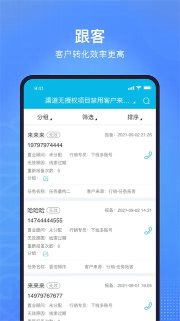 3. 管理方便,手机端可一目了然查看业绩,实时掌握拓客动线轨迹。