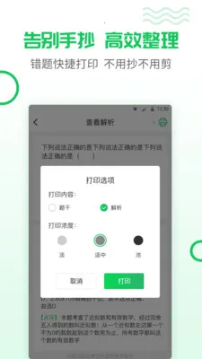 2. 30秒完成一道错题整理,告别手抄,通过拍照-识别-打印流程快速生成错题本。
