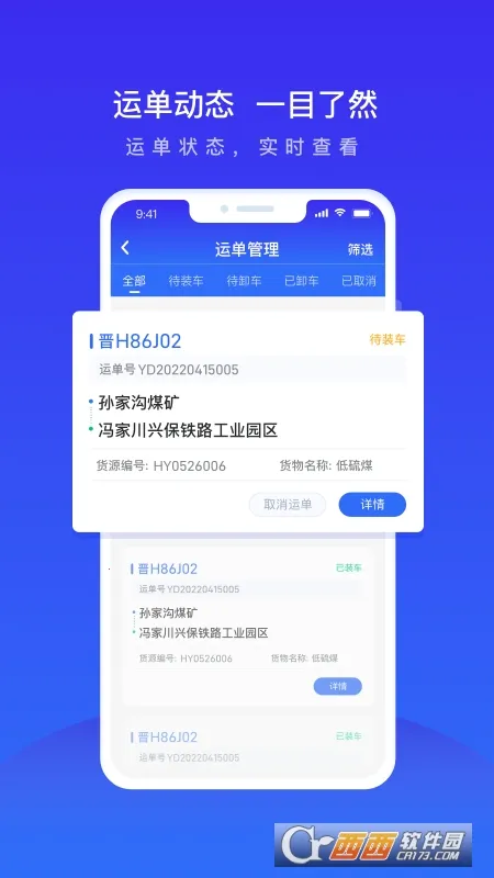 2. 详细运单管理:对货物运输订单进行详细管理,可查询订单内容,包括货源介绍、目的地、运输时间等,方便确定运输计划,轻松实现运单扫码,完成相关操作。