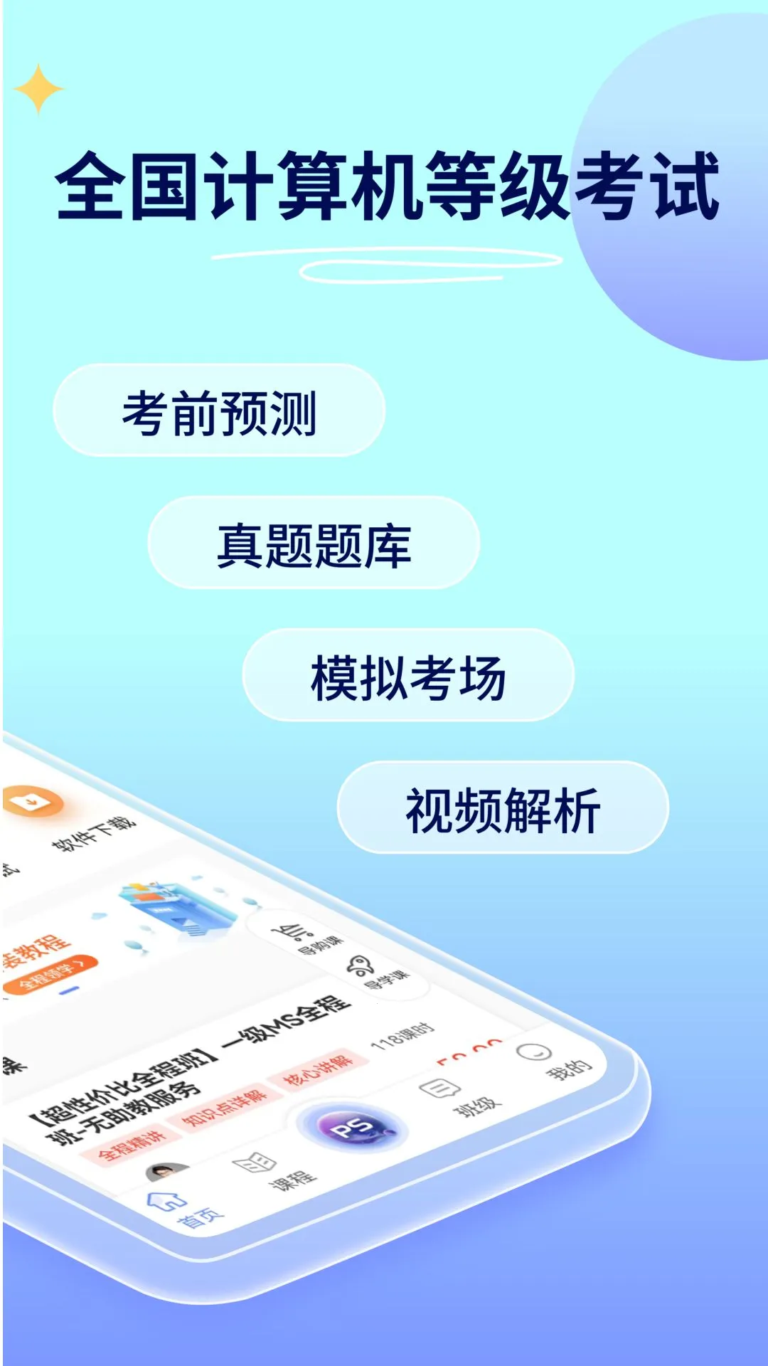 等考宝典计算机考试最新手机版,涵盖一到四级计算机考试内容,海量题库实时更新。有真题模拟、名师辅导等功能,提供高清视频详解,支持手机平板轻松刷题,助用户高效备考,顺利通过考试。