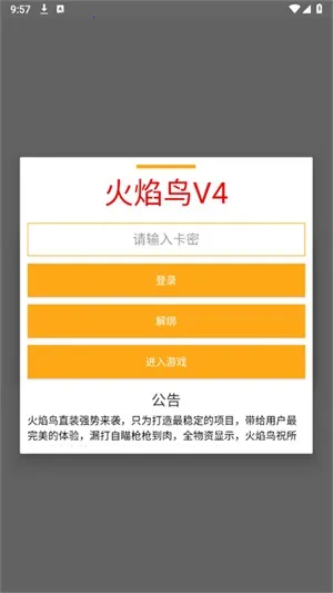 火焰鸟直装是一款超棒的游戏辅助工具。它能帮你提升游戏技巧,增强游戏体验。有多种强大功能,比如更快拿起装备和工具,让你轻松击败对手;提供多种游戏辅助功能,可自由按需使用;能提高游戏帧速率,减少延迟。还具备智能瞄准,300ms内完成骨骼锁定,自动修正弹道误差,爆头更稳;无后坐力可重构压枪曲线;热成像透视800m范围穿墙显敌等。其特点是不仅能灵活打开,还提供多种功能选项;能快速开启许多游戏辅助功能。优势在于防封系统智能运行,降低帐号风险;支持高度定制设置,有精确自动瞄准功能。使用时,先在本站下载安装,打开进入主页开启悬浮窗权限,输入卡密登录,就能看到完整功能页面,按需开启相关功能啦,让你在游戏中更厉害!