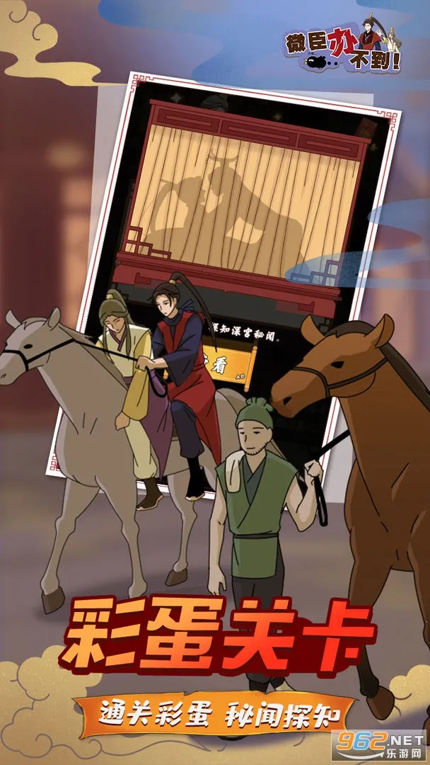 微臣办不到是一款宫廷解谜游戏,由汇智众通提供。有出众美术画面且无广告,剧情丰富,人物关系复杂。玩家可化身皇上,与将军展开故事,通过解谜、互动提升好感度,还有超多关卡和道具。