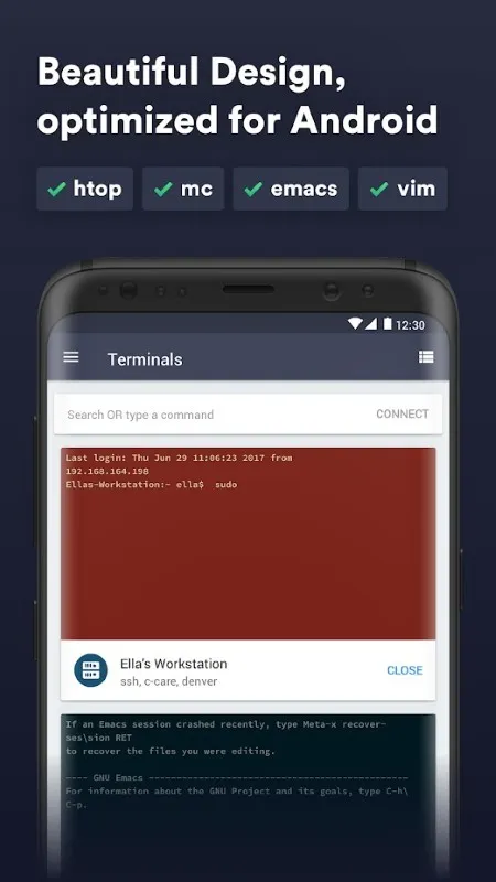 3. 拥有12个彩色主题和可调字体,支持终端触摸、多任务分视图,还能跨设备同步主题、常用命令、主机地址、登录信息等数据,满足个性化需求。
