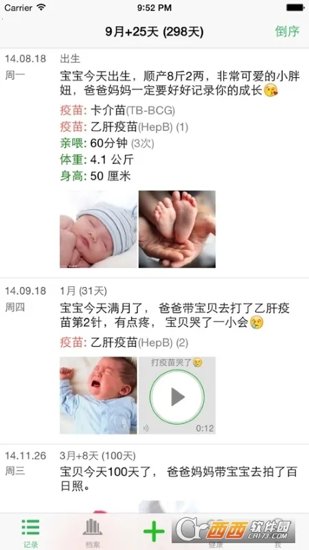 1. 随手记录详情,爬行时间、洗澡时间、玩耍时间等,全都能一键记录下来。