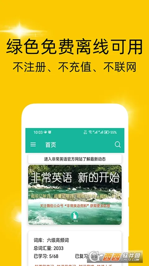 2. 融入非常英语学习理念,功能齐全,能背单词、复习单词、测试单词,采用艾宾浩斯记忆曲线,单词内容由专业八级人士校审。