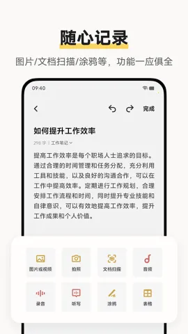 3. 支持语音录入功能,还能在笔记中插入图片和音频,内容更丰富。