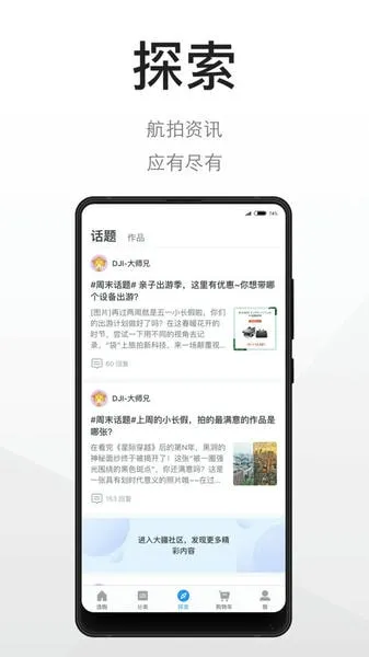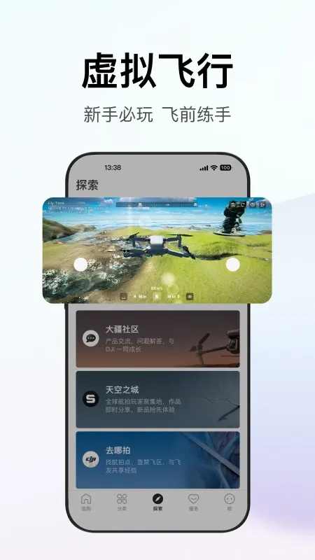 DJI大疆商城app是大疆自营在线商城,展示各类无人机等产品,有新品首发、预售,提供官方增值服务,还有社区互动与学习功能,正品保证、优惠多,方便用户购物及提升拍摄技巧。