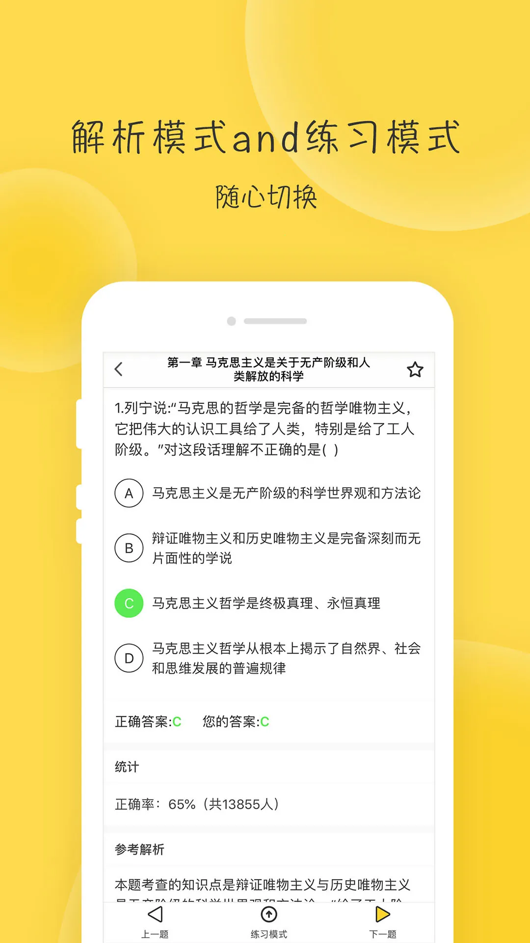 2. 功能强大实用,题目可收藏,方便随时复习强化;有历年真题准确分析,助你熟悉考点难度;能自由切换学习模式,满足不同需求。