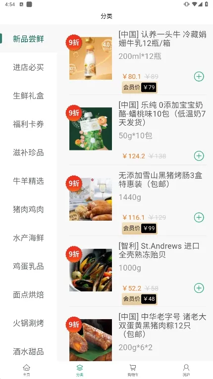 2、商品种类极为丰富,涵盖世界各地新鲜食材和美食产品,有日本海鲜、澳洲牛肉、法国奶酪葡萄酒等,满足多样需求。