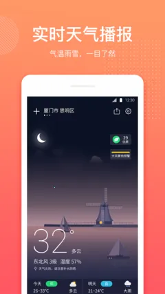 喵喵实时预报天气是专为安卓用户打造的天气查询软件。能精准定位,提供实时天气、15天预报等,还有自然灾害预警。可记录日程,有万能工具箱,界面清新,语音播报,让生活更便捷。