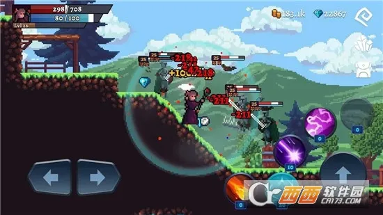 3. 特色图像处理:图像处理系统丰富,有相机抖动、打击闪烁、健康掉落动画、掉落飞行四面八方等效果,角色和敌人行动快,玩家需时刻走动。