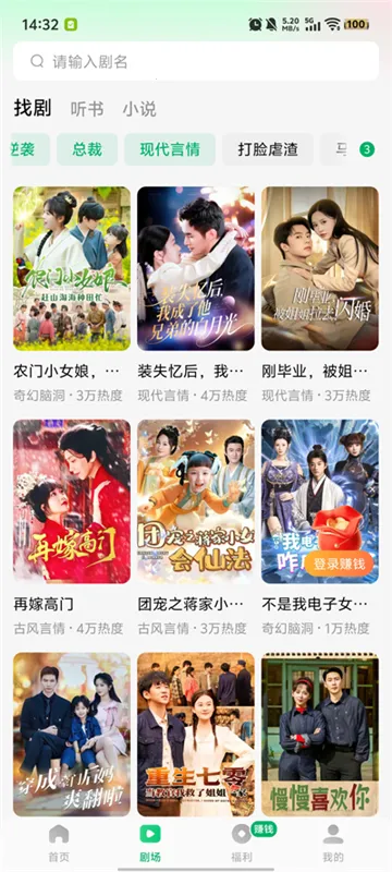 木叶短剧是一款超棒的免费短剧平台。它题材超丰富,有古风权谋、甜宠言情、都市修仙等20余种。在这能满足你碎片化娱乐需求,随时看剧超方便。它还有金币奖励系统,签到观影就能赚金币,33000金币能换1元,而且提现秒到账。基于你的观看习惯,智能推荐引擎会推送个性化内容,精准匹配你的喜好。多端还能同步,手机和平板数据互通,追剧进度无缝衔接。你可以登录领新人红包,现金收益实时显示,够数就能提现。首页能轻松选剧和搜索,还有小说听书资源免费使用。不管是喜欢哪种题材短剧,还是想边看边赚点小钱,木叶短剧都能满足你,让你尽情享受追剧乐趣。
