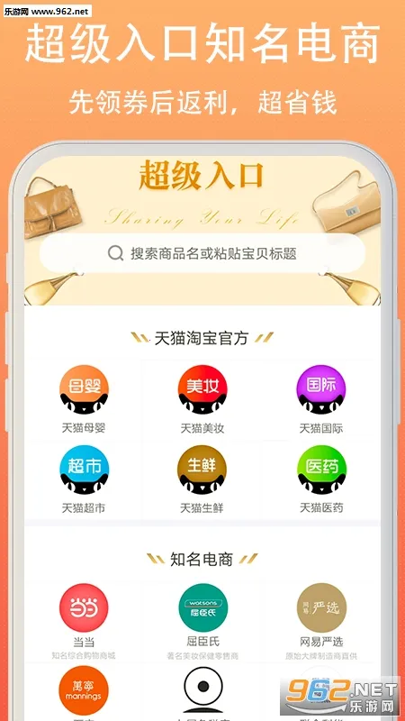 与淘宝、天猫、京东、拼多多等一线商家合作,收集海量内部优惠券,购物领券能省钱,分享商品还能获收益。