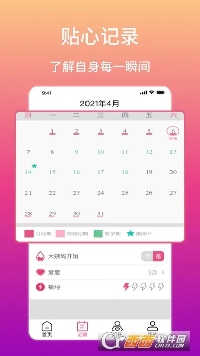 1. 精准记录例假时间,不管提前还是延后,软件都会帮你保存数据,让你对自己的生理期情况了如指掌。