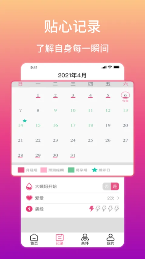 1. 能精准记录例假时间,提前提醒,帮助女性做好准备,减少生活不便和意外情况。