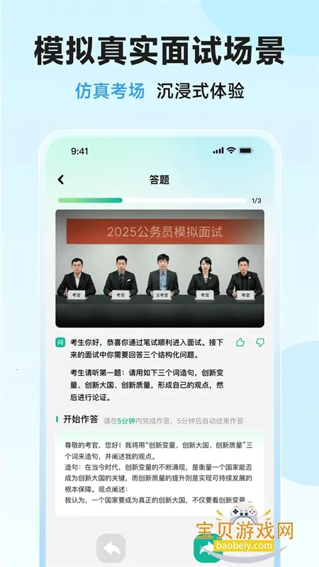 软件的沉浸式面试模拟,通过全真考官视频场景,让备考更真实更具参与感。