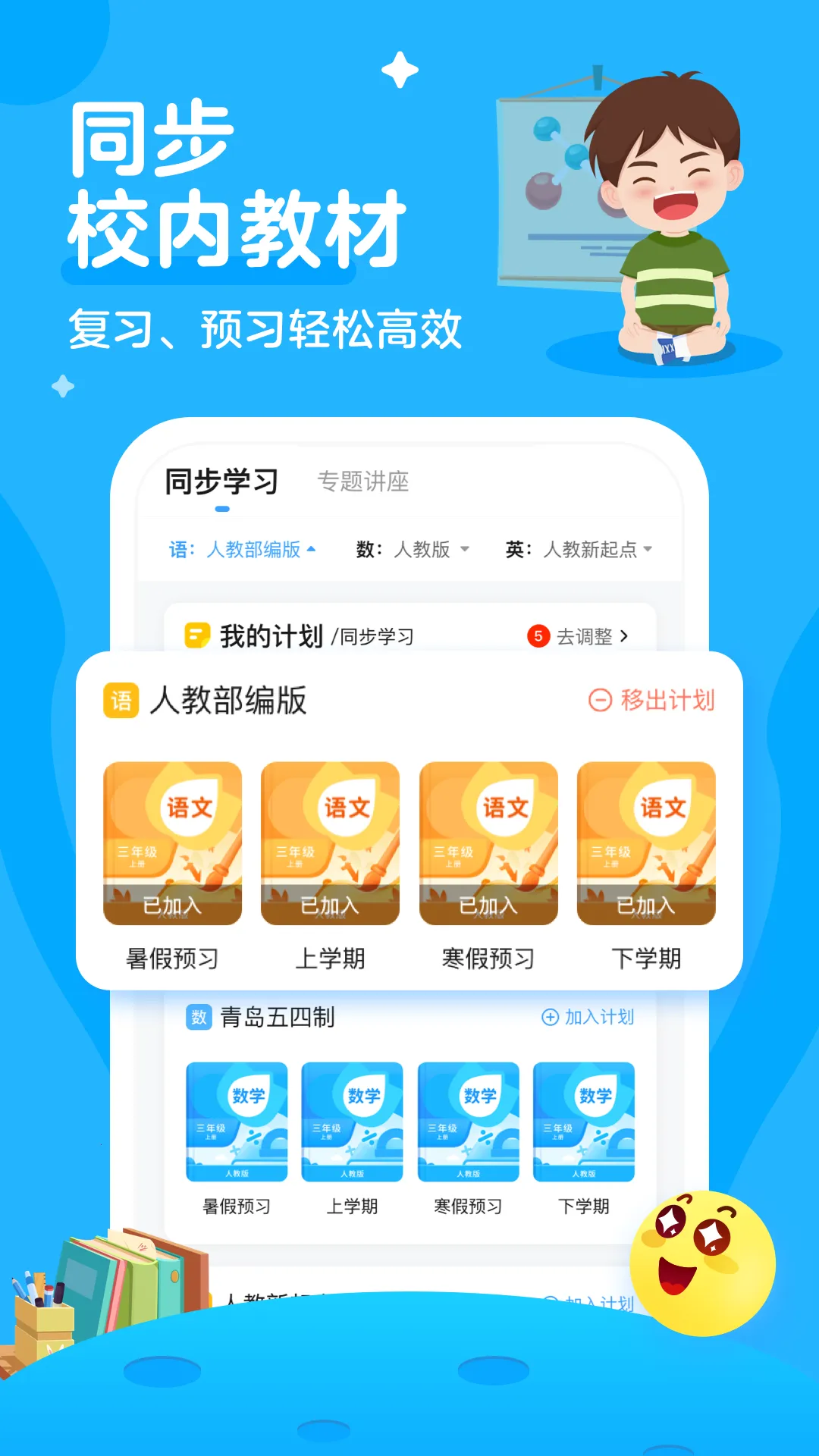 2、小学同步精品课独创学练测三步教学法,助力孩子学习。