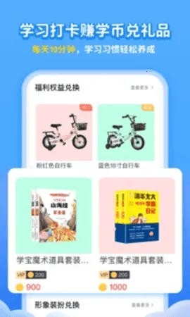3. 具备完善奖励机制,学习打卡、做任务可挣奖学金,兑换丰富学习礼品,激励孩子保持学习热情。