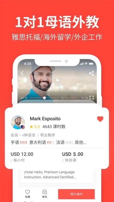 3、一课一付,按需上课,每课时低至5美元,告别长期捆绑消费,可自由选择跟着一个老师学,或同时拥有多个专长老师,按自身需求和节奏提升外语水平。