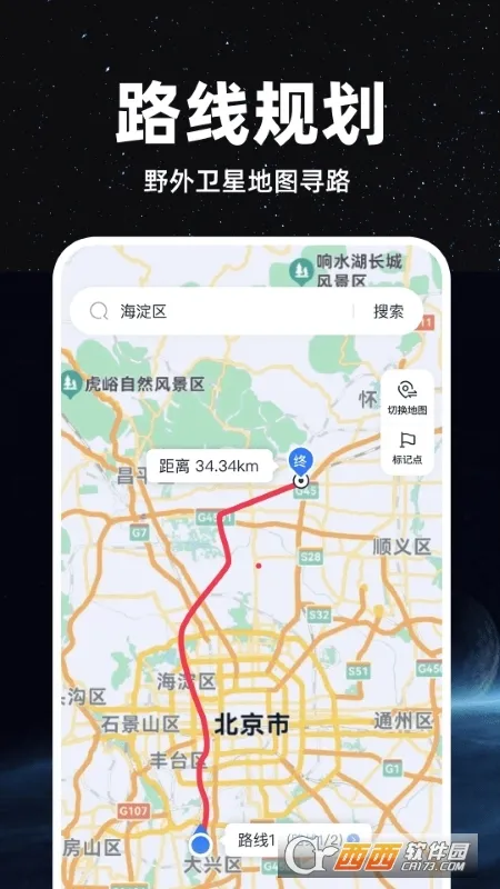 2、功能多样,有智能线路规划,结合实时路况与卫星定位确保行程顺畅高效;支持多种测量工具满足测绘需求;标记坐标方便记录与分享。
