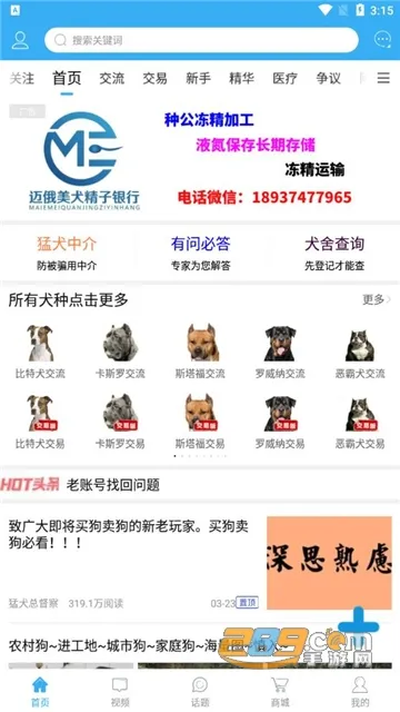 3. 内容丰富,有全面的猛犬竞技视频库、海量精彩话题,还有丰富犬种科普知识。