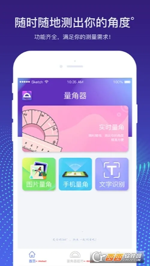 量角器测量仪是多功能手机测量软件,集实时量角、图片量角、坡度测量等功能于一体,支持单位转换、智能识别。界面简洁,操作简单,还能换肤,随时随地满足多种测量需求。