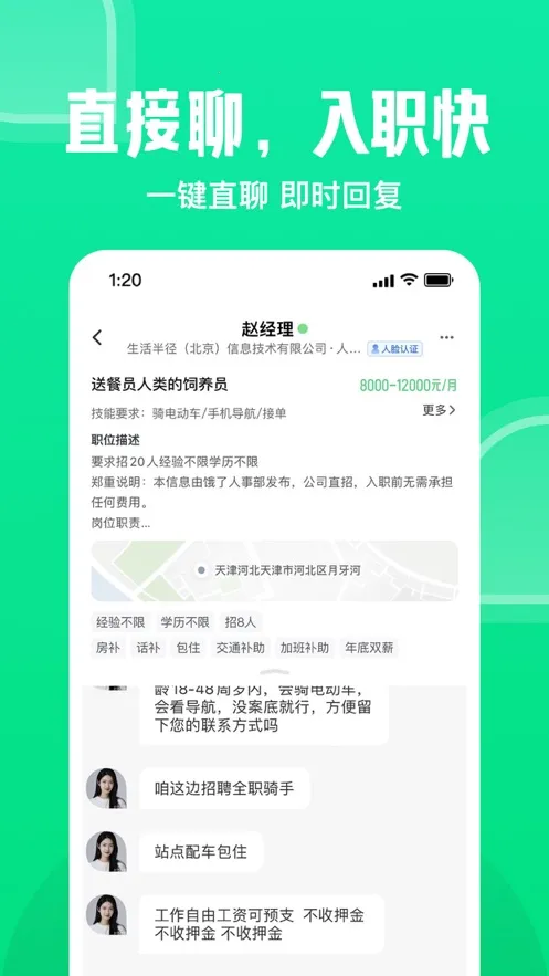 3. 能直接与企业HR沟通,了解更多职位详情,在家里就能轻松找工作。