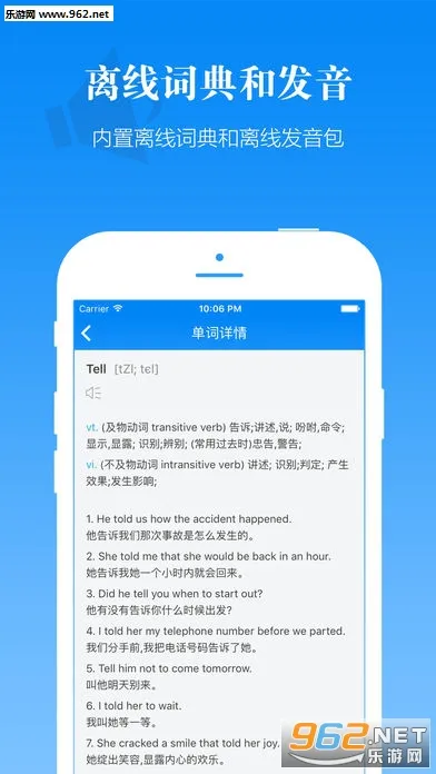 4. 会打分的口语外教:内置来自硅谷前沿语音识别技术,给英语口语实时打分,矫正发音。