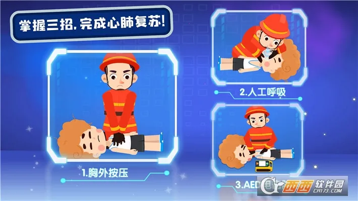 宝宝救灾英雄这款游戏真的超棒!它能帮咱解决好多实际问题呢。就拿“宝宝救灾英雄触电”来说吧,在游戏里能学到触电救援的知识。要是遇到有人触电,知道单脚跳离电线掉落点,不能撒腿就跑,还能用干燥木头挑开电线,千万别徒手去碰。要是呼吸心跳停止了,消防员会帮忙做心肺复苏,胸外按压和人工呼吸交替进行,还会清除口腔异物、开放气道,用 AED 除颤仪除颤。还有楼梯摔落损伤应急处理、火灾逃生、正确治疗烫伤等各种实用的救灾和急救知识。通过有趣的卡通互动游戏,让孩子轻松掌握这些知识,遇到突发危险时能更好地保护自己,真的特别方便又实用,强烈推荐给各位家长!