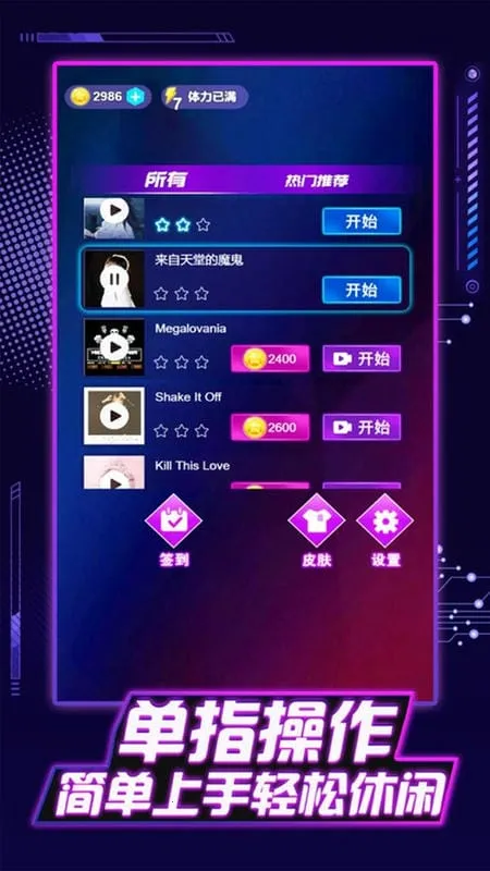4. 关卡难度有梯度,新手易入门,高手能持续挑战,且可自由选歌曲定制挑战。