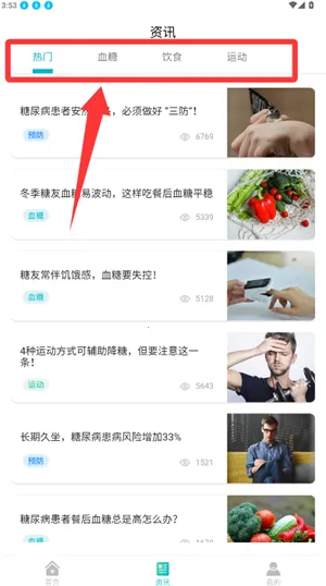 2、浏览资讯页分类,选择感兴趣的文章内容。