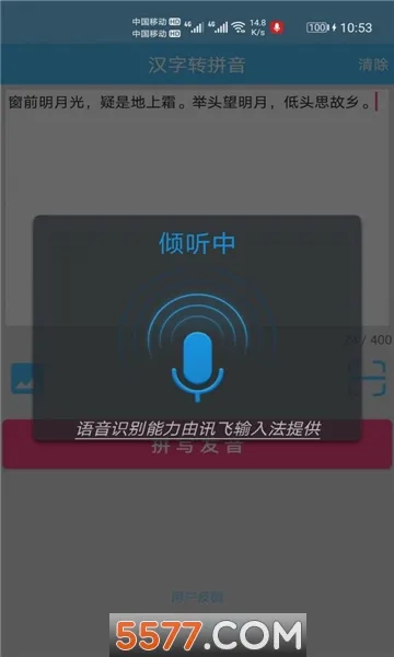 汉字拼音转换是功能强大的转换软件,支持汉字与拼音快速转换。能进行多语种翻译、多种方式输入,快速查拼音声调,还有便捷操作、多样识别、文本发音等特色亮点。