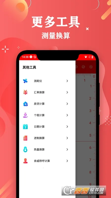 1. 多工具集成,直尺、测距、量角器等整合,底部导航栏快速切换,无需频繁退出重进。