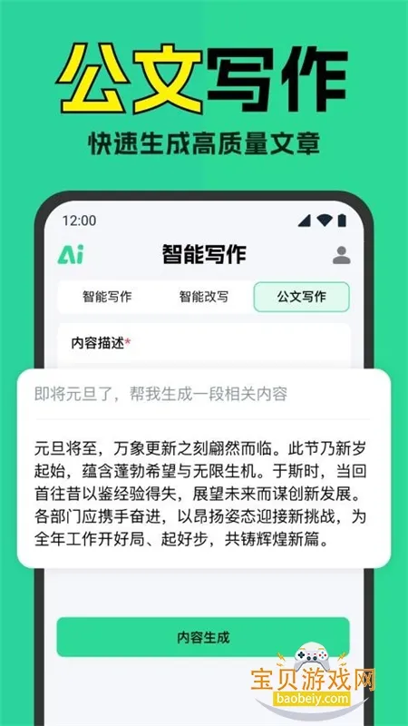1. 操作简单,输入关键词就能快速完成写作,各种文体都能驾驭。