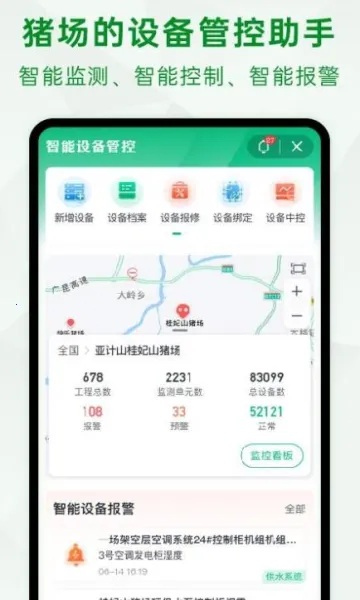 4. 另外,针对猪场异常状况的报警管理功能也备受好评,能提供预警和报警并给出解决方案,助力更好地管理猪场。