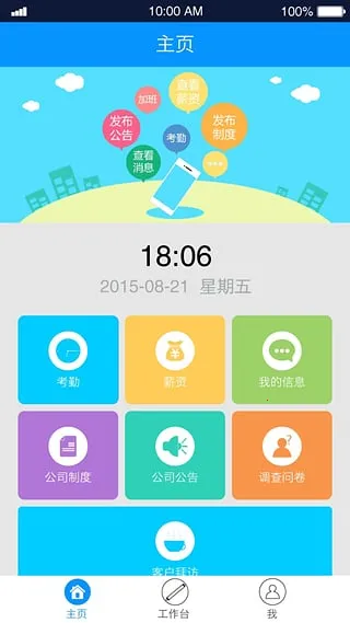1. 智能化考勤管理,告别传统考勤模式,无需指纹、胸牌,摆脱爬楼梯挤电梯打卡的困扰。