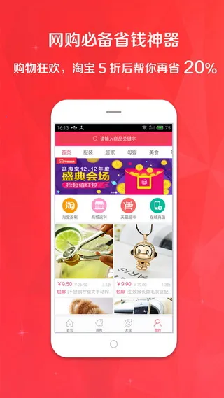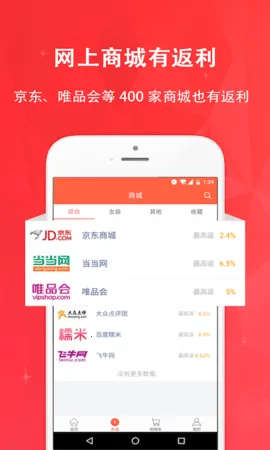 4. 功能贴心实用,宝贝降价会提醒,支持 400 多家商城购物返利,随时随地拿返利。